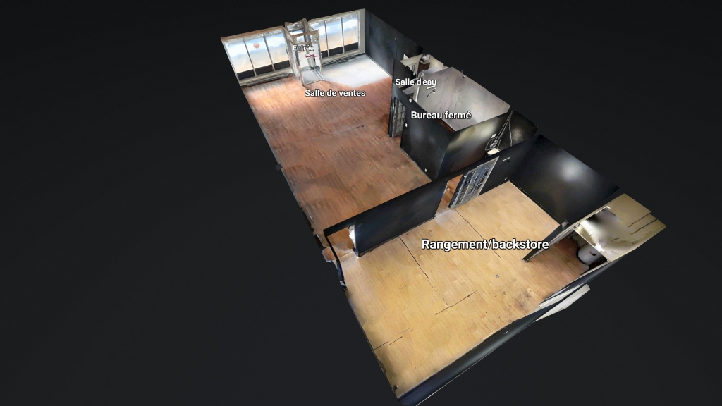D’une superficie d’environ 1 485 p.c., l’espace comprend une grande salle de ventes à aire ouverte, idéale pour accueillir votre clientèle dans un environnement professionnel et invitant. On y retrouve également un bureau fermé, une salle d’eau ainsi qu’un grand espace arrière pouvant servir de rangement ou de backstore.