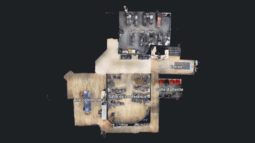 D’une superficie d’environ 7 153 p.c., le local est situé au niveau sous-sol et comprend un grand nombre de petits bureaux fermés, offrant intimité et efficacité pour le travail administratif ou professionnel. On y retrouve également une salle de formation, une salle de conférence, une aire commune, une salle d’attente ainsi qu’une entrée distincte, créant une circulation fluide et professionnelle.