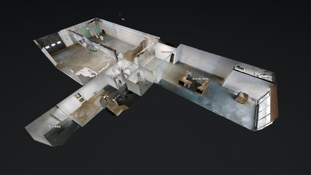 Le local comprend également des bureaux, situés au niveau supérieur, offrant un espace séparé pour l’administration, la gestion ou le travail d’équipe. Deux salles d’eau ainsi que des espaces de rangement sont intégrés, optimisant la fonctionnalité globale.