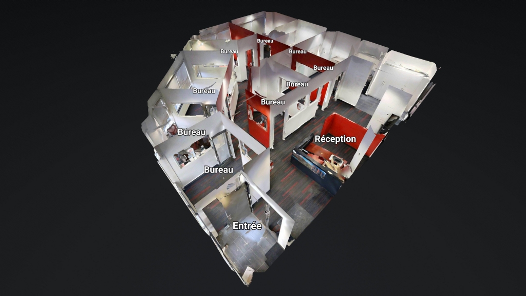 Le local est situé au rez-de-chaussée et se compose de neuf bureaux fermés, d’un espace de réception, ainsi que de corridors bien définis facilitant l’accès à chaque bureau. L’aménagement favorise le travail individuel, la confidentialité ainsi que l’efficacité opérationnelle.