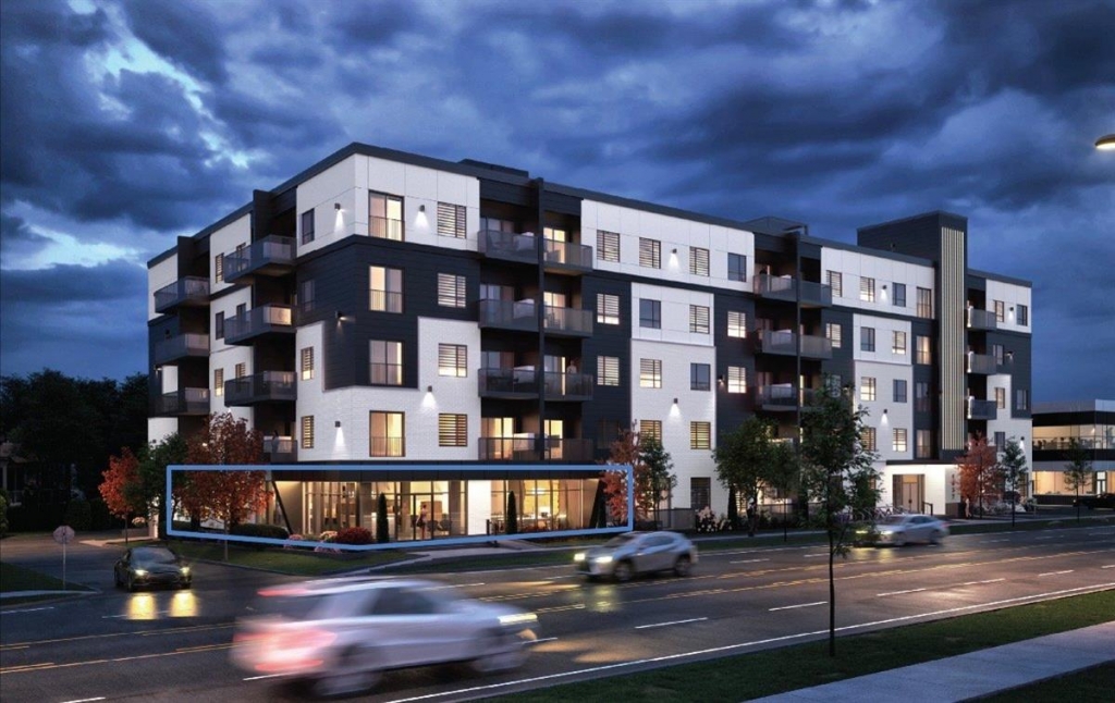 Commercial spaces for rent (delivery early July 2026). Unique opportunity to establish your business on the ground floor of a condo tower with daily foot traffic. Unit offered in Base Building, ready to be fitted to your concept and needs. Located on Ch. Gascon, close to all services, in a rapidly growing area with strong potential. Includes 6 parking spaces. Large customer parking available. Additional rent $8.00/sq.ft. Hot water included.